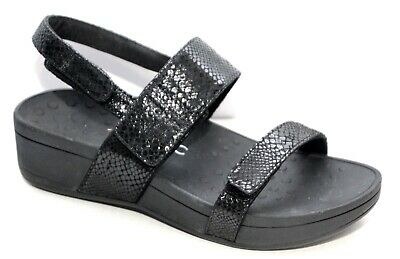 Island adventures are just one comfortable step away, in the Vionic Pacific Bolinas backstrap sandal in black snake. The Pacific Bolinas adjustable platform sandals by Vionic feature a stylish printed leather, dual density midsole, durable rubber outsole and EVA footbed, complete with 3 points of adjustability for optimal personalized fit. Vionic shoes are made with orthaheel technology by podiatrists, to help with balance, support, stability, and natural alignment.